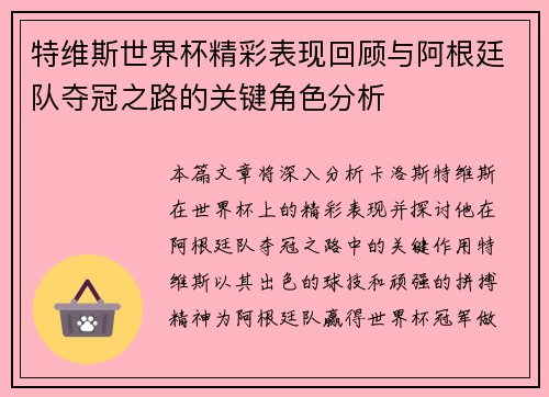 特维斯世界杯精彩表现回顾与阿根廷队夺冠之路的关键角色分析